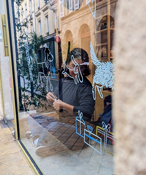 Les vitrines que je réalise sont faites à la main, à la peinture acrylique et aux Posca. Elles sont uniques, pensées pour vous et votre établissement ! Je m'adapte à toutes vos demandes pour vous proposer le projet au plus proche de vos envies. • •